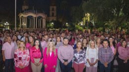 Alcalde de Matamoros y el DIF iluminan la Presidencia Municipal en apoyo a la lucha contra el cáncer de mama