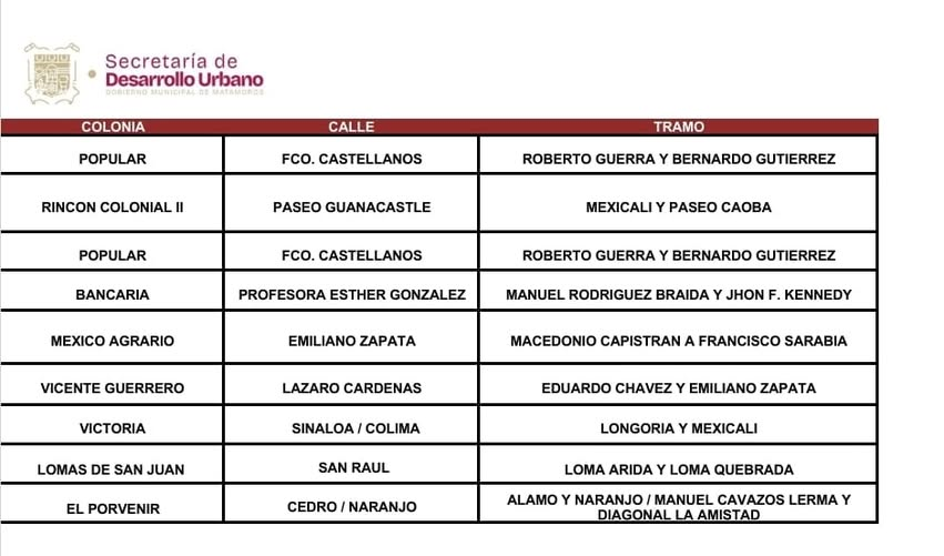 Agenda del Programa Permanente de #Bacheo en Matamoros