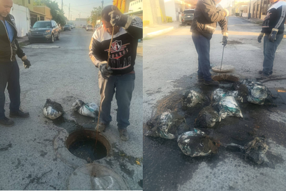 La obstrucción, provocada por costales, no permitía el libre paso de las aguas negras hacia el subcolector ubicado en la calle Abedul, en la colonia Mariano Matamoros.