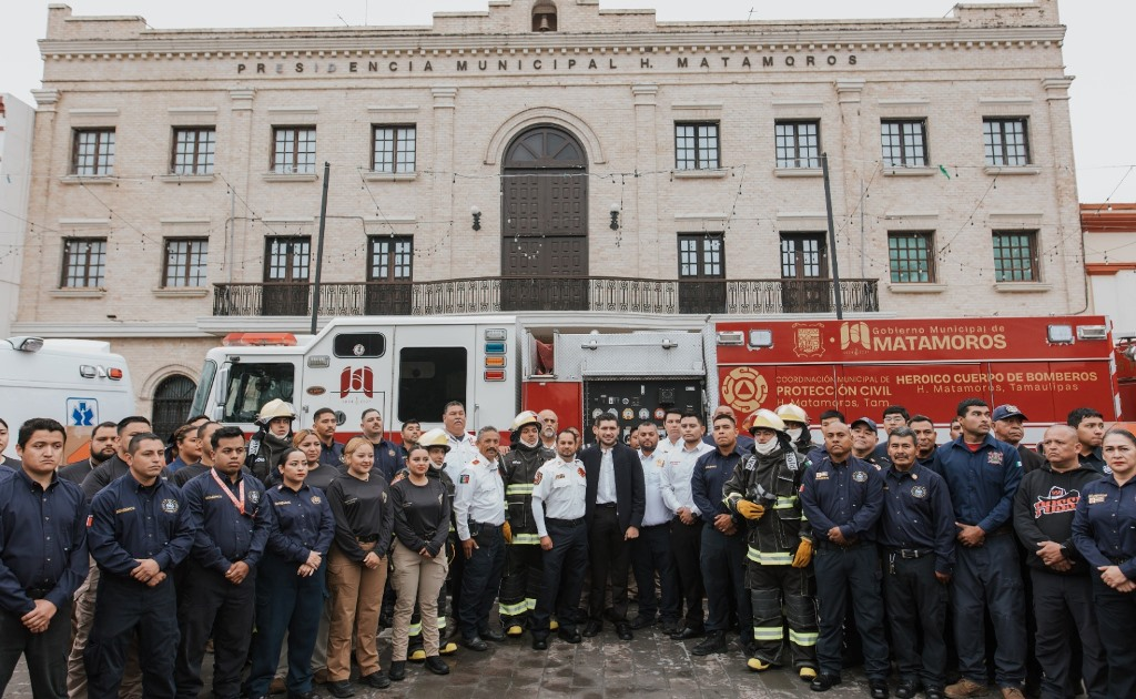 “Mi gobierno también se suma a esta iniciativa y entrega tres camiones más, con un valor cercano a los 2 millones de pesos. Es decir, esos cuatro camiones de bomberos estarán en ruta hoy mismo al servicio de Matamoros”, enfatizó el Presidente Municipal.