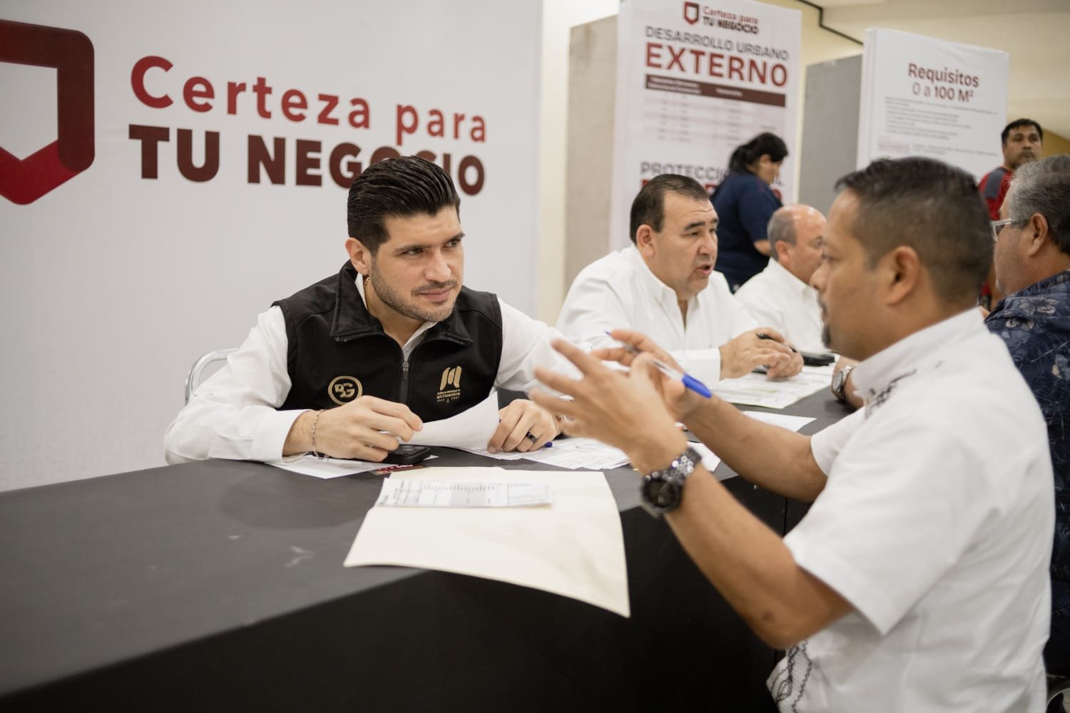 La reunión se llevó a cabo en el Centro de Convenciones Mundo Nuevo, donde empresarios locales acudieron con el propósito de regularizar sus establecimientos y recibir orientación directa por parte de las distintas dependencias municipales; asimismo, el Presidente Municipal agradeció la confianza de los comerciantes y empresarios en su administración.