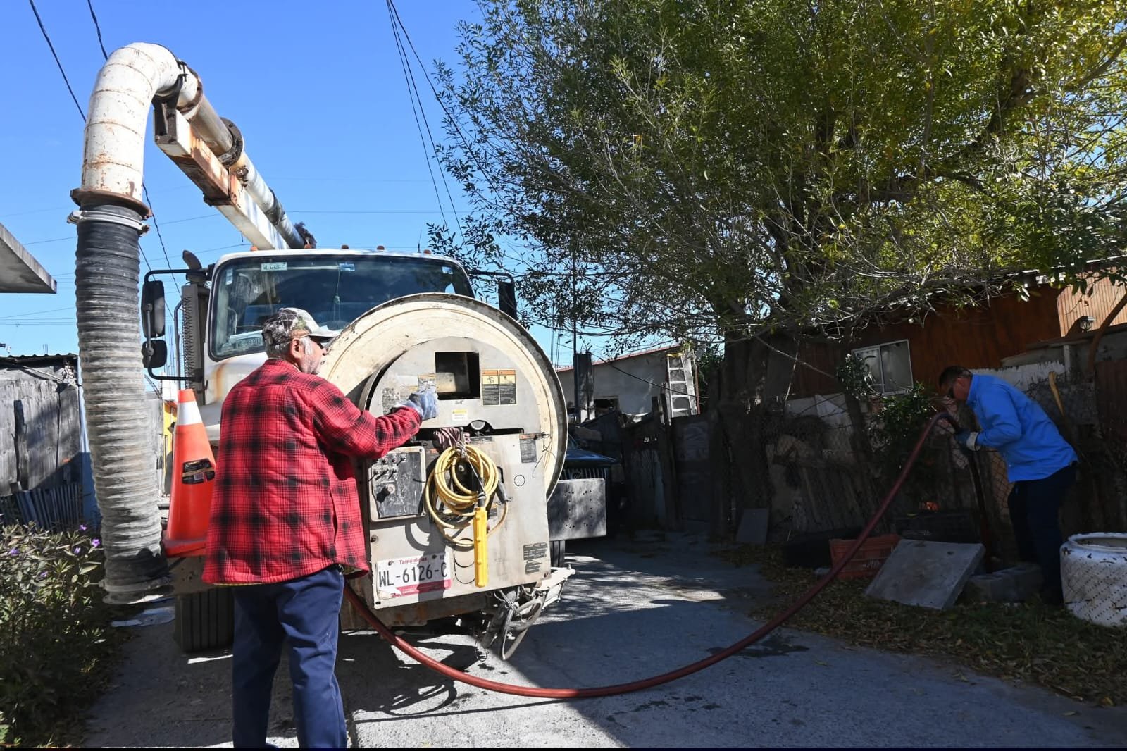 Como parte del compromiso del alcalde de Matamoros, Beto Granados, con el fortalecimiento de los servicios públicos, el camión vactor d ella Junta de Aguas y Drenajes, recorre diariamente las colonias de la ciudad realizando labores permanentes de mantenimiento al drenaje sanitario.