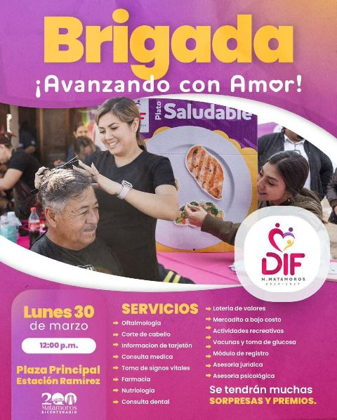 Hoy lunes 30 de marzo a las 12:00 p.m., en H. Matamoros, acércate y aprovecha todos los servicios gratuitos y a bajo costo para ti y tu familia.