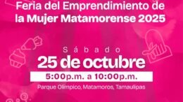 25 de octubre 2025. El Gobierno de Beto Granados invita a todas las familias matamorenses a participar en la Feria del Emprendimiento de la Mujer…