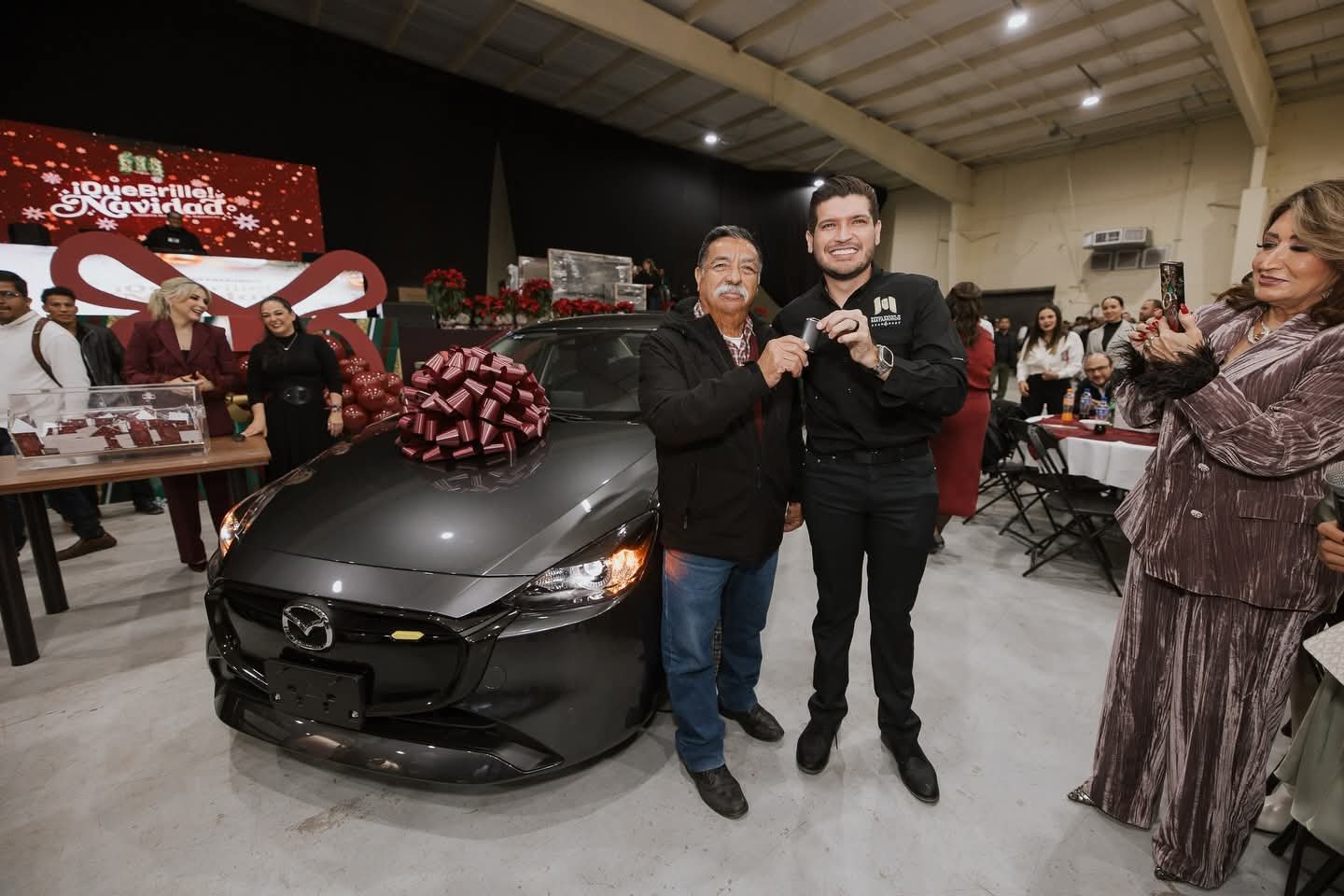 El vehículo fue entregado al compañero Filadelfo Valdez Cantú, auxiliar administrativo de la Dirección de deportes, quien resultó ganador del sorteo y recibió el obsequio con gran emoción, compartiendo este momento especial con sus compañeros de trabajo.