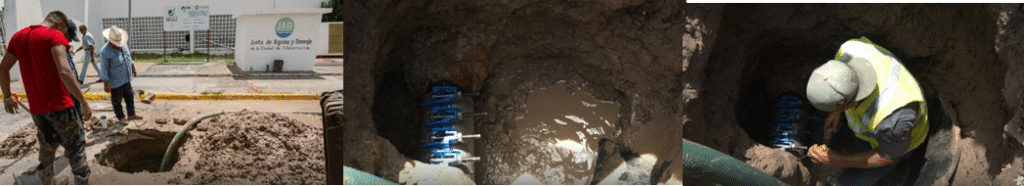 En este lugar se colocó una abrazadera en la tubería dañada, con lo que se resolvió de manera inmediata el problema, garantizando el suministro de agua para las familias del sector.