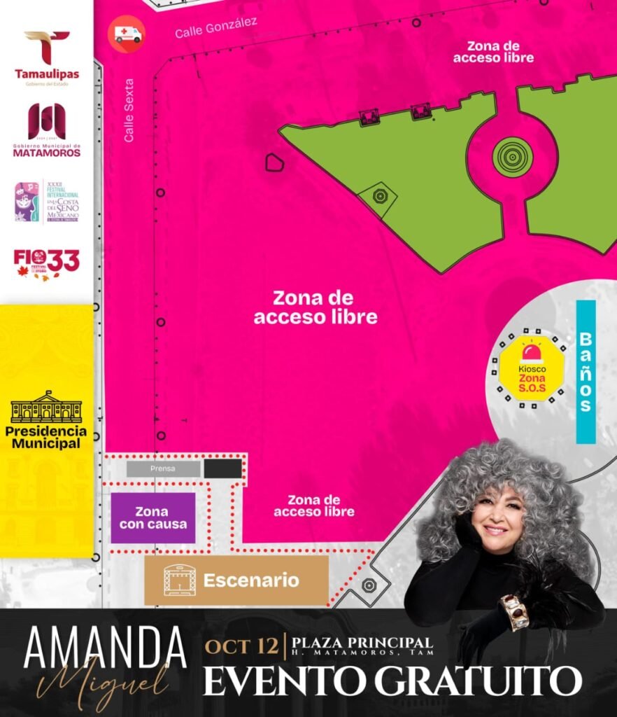 Autoridades locales aclararon este jueves que la presentación de Amanda Miguel en Matamoros será completamente gratuita para todo el público, luego de que circulara información errónea sobre un presunto cobro de boletos.