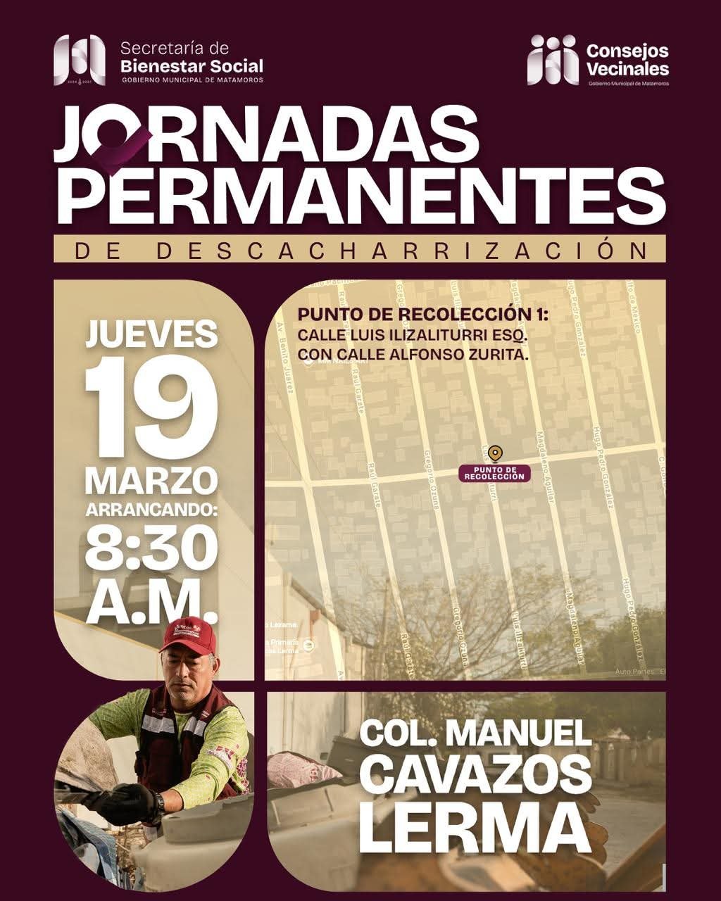 🚛 Este jueves llevamos las Jornadas Permanentes de Descacharrización a la colonia Manuel Cavazos Lerma, impulsando acciones que ayudan a prevenir la formación de criaderos de vectores y reducir riesgos para la salud.