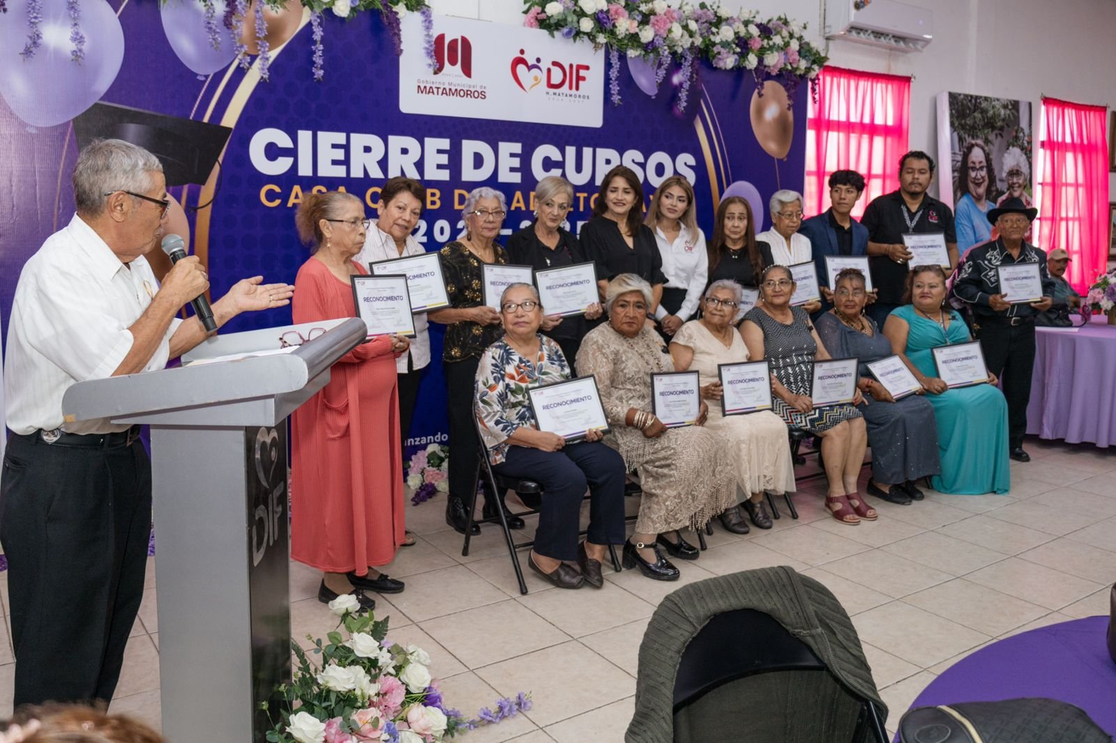 La mañana de este viernes, el Sistema DIF Matamoros que preside la Lic. Ana Ariceaga de Granados, reconoció el empeño y dedicación de los adultos mayores que hoy culminan su ciclo de talleres en la Casa Club del Adulto Mayor, destacando su energía y amor en cada uno de sus aprendizajes en estas capacitaciones.