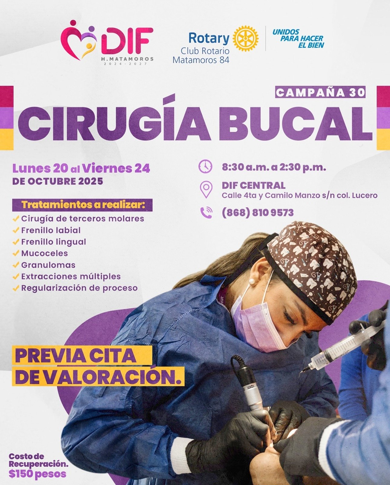 DIF Matamoros y Club Rotario lanzan Campaña de Cirugía Bucal para la comunidad.