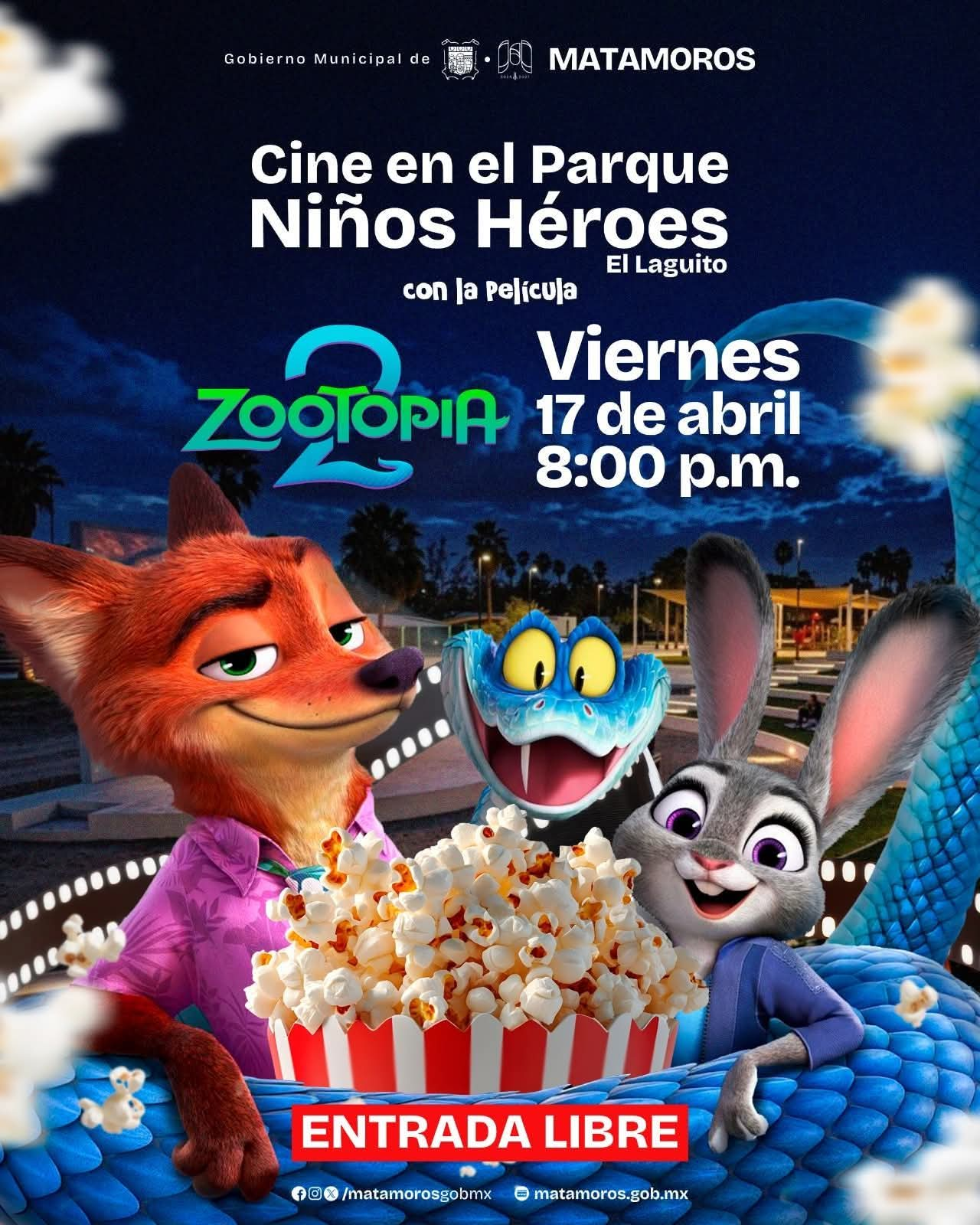En esta ocasión, se proyectará Zootopia 2, una opción perfecta para disfrutar de una noche diferente en un ambiente al aire libre.