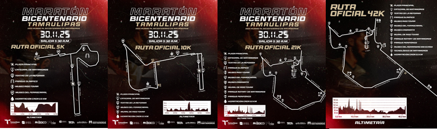 Las distancias disponibles serán de 5K, 10K, 21K y 42K, recorridos que abarcarán diversos puntos emblemáticos de la ciudad. Las rutas y cierres viales permitirán que los corredores transiten por zonas históricas y turísticas, destacando la riqueza cultural de Matamoros y ofreciendo una experiencia única tanto para atletas como para espectadores.