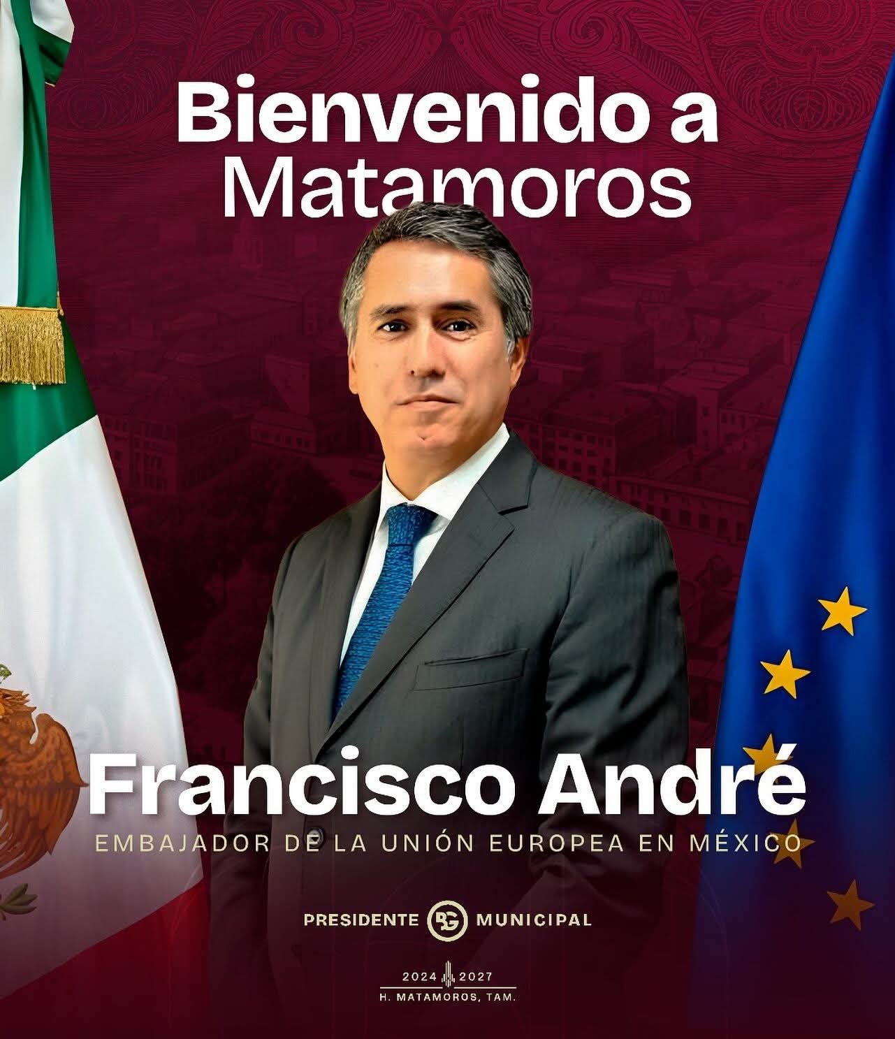Con orgullo y hospitalidad, Matamoros le da la más cordial bienvenida al Embajador Francisco André, confiando en que este acto histórico será el inicio de más oportunidades y acciones conjuntas que fortalezcan el futuro de la ciudad y de Tamaulipas.