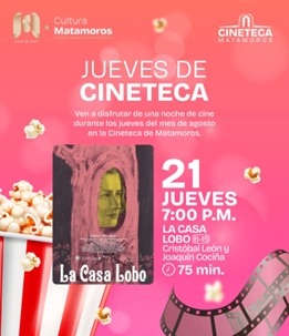 El Gobierno de Beto Granados informó que la Cineteca Matamoros abre sus puertas para proyectar La Casa Lobo, de Cristóbal León y Joaquín Cociña, una obra cinematográfica que fusiona arte y narrativa en una experiencia única. Esta película invita al espectador a sumergirse en una historia inquietante y fascinante, reafirmando que en el renacimiento de Matamoros también brilla la cultura.