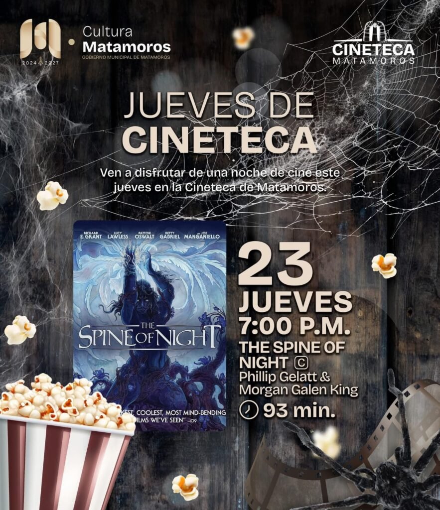 El Gobierno de Beto Granados continúa impulsando la cultura y el entretenimiento para todas y todos los matamorenses a través del programa Jueves de Cineteca, una iniciativa que forma parte de la visión de Matamoros Renace. Este jueves, la pantalla grande presentará “The Spine of Night”, una obra animada que destaca por su estilo visual impactante y su narrativa que fusiona la fantasía y el terror de manera magistral.