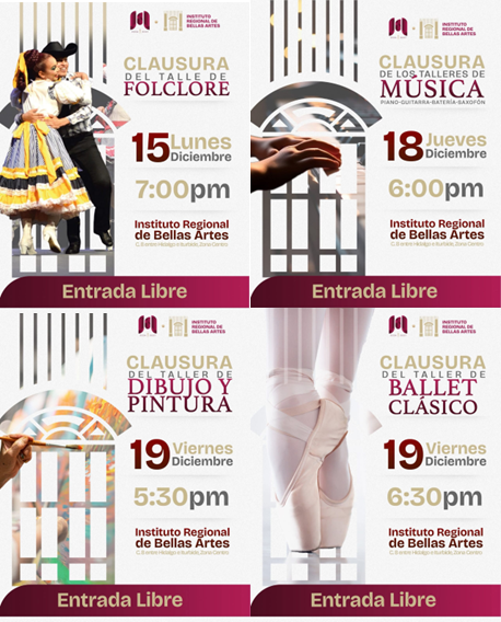 El Gobierno de Beto Granados, a través de la Secretaría de Educación, Cultura y Deporte, en coordinación con la Dirección de Cultura y el Instituto Regional de Bellas Artes, invita a la comunidad matamorense a la Clausura de Talleres del Instituto Regional de Bellas Artes, un espacio que celebra el talento, el aprendizaje y la expresión artística de niñas, niños, jóvenes y adultos.