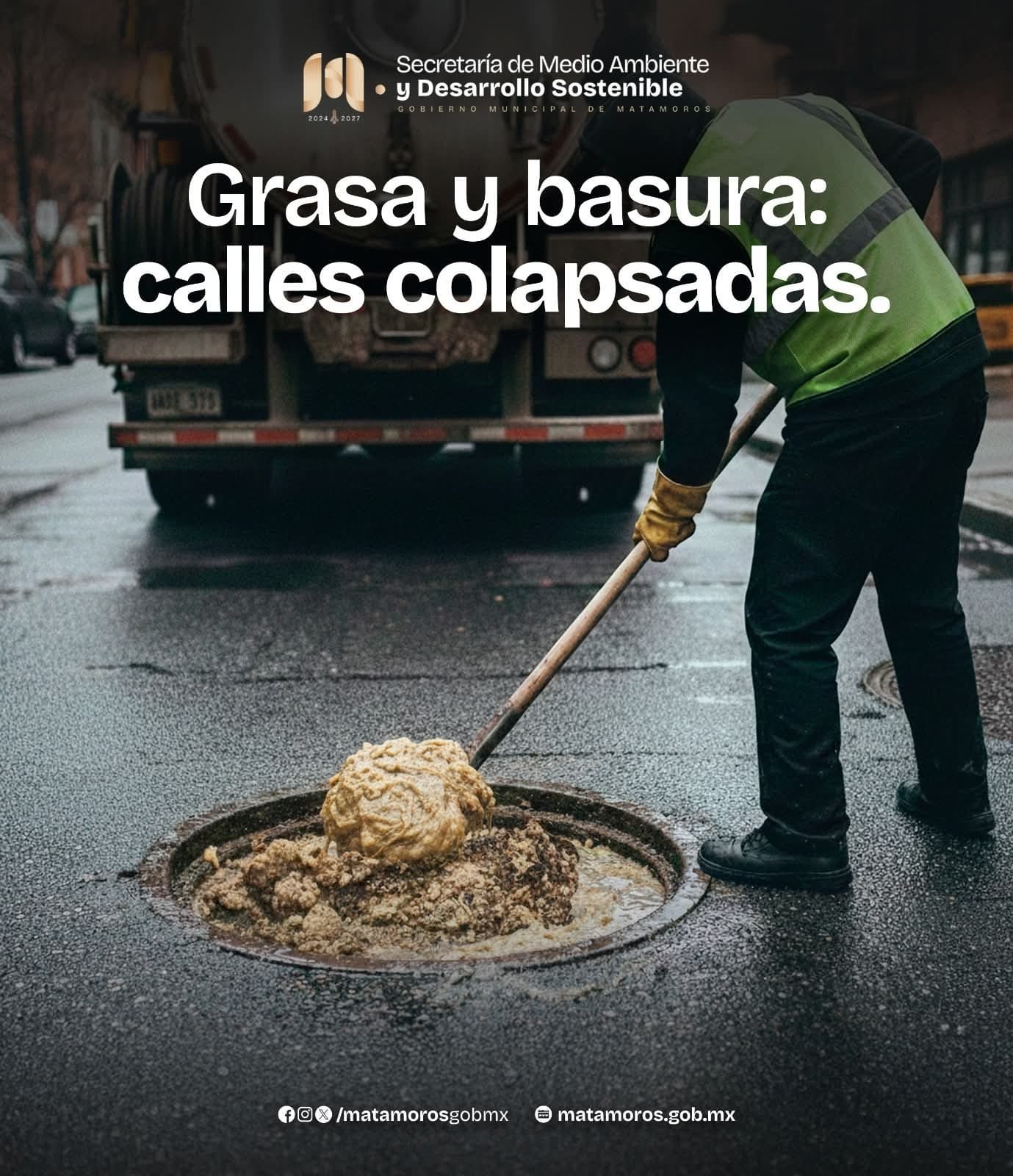 El Gobierno Municipal que encabeza Beto Granados emitió un llamado a la ciudadanía para evitar verter aceites, grasas y desechos sólidos en el drenaje, una práctica que continúa generando obstrucciones y daños a la red pluvial de Matamoros, especialmente durante la temporada de frío.