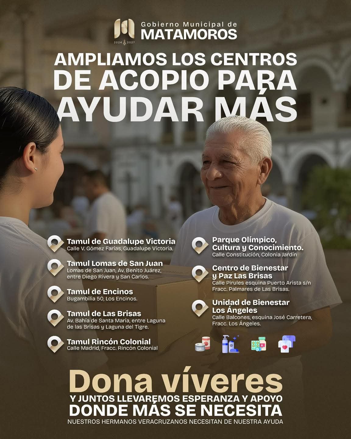 El ayuntamiento, en coordinación con diversas dependencias, ha dispuesto estos espacios para garantizar que la ayuda llegue de forma rápida, segura y organizada. Se recibirán víveres no perecederos, productos de higiene personal, ropa en buen estado, artículos de limpieza y de primeros auxilios.