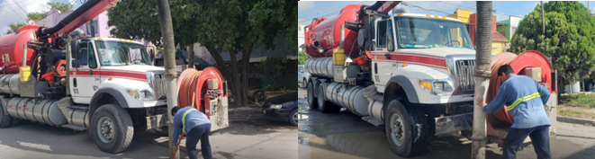 El Gobierno de Matamoros, que preside Beto Granados, llevó a cabo trabajos de desazolve y limpieza con el camión vactor en el Fraccionamiento Hacienda del Puente, con el objetivo de mantener en óptimas condiciones las líneas de drenaje y prevenir obstrucciones.