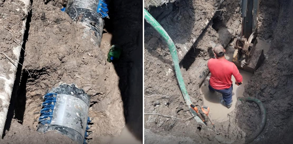 En la Avenida Constituyentes, personal especializado llevó a cabo la reparación de una fuga de agua, colocando cuatro abrazaderas para restablecer de manera inmediata el servicio y evitar mayor desperdicio del vital líquido.