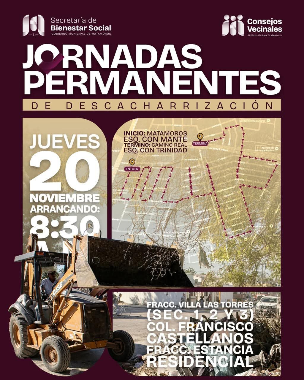 Este jueves 20, a partir de las 8:30 de la mañana, las cuadrillas municipales visitarán los fraccionamientos Villa Las Torres (Secciones 1, 2 y 3) y Estancia Real, así como la colonia Francisco Castellanos, para retirar objetos en desuso y promover entornos más limpios, ordenados y seguros.