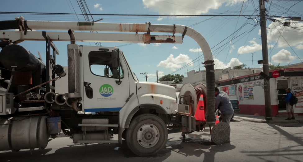 El camión vactor de la Junta de Aguas y Drenajes realiza labores diarias de limpieza y desazolve para reducir los niveles de agua y prevenir obstrucciones en las líneas sanitarias.