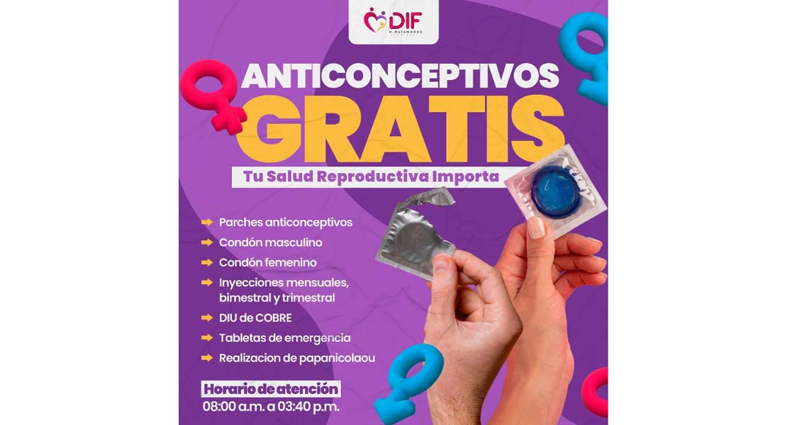 El Sistema DIF Matamoros, invita a la población a participar en la Campaña Gratuita de Anticonceptivos, con el propósito de fomentar una sexualidad responsable y brindar orientación oportuna en materia de salud reproductiva.