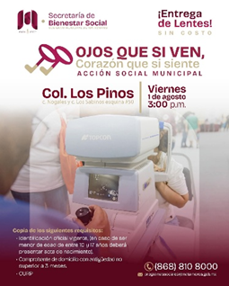 El Gobierno Municipal que encabeza Beto Granados invita a todas las familias de la colonia Los Pinos y sectores cercanos a participar este viernes 1 de agosto en una jornada de Acción Social Municipal, que se realizará a partir de las 3:00 de la tarde en la esquina de calle Nogales y calle Los Sabinos #50.