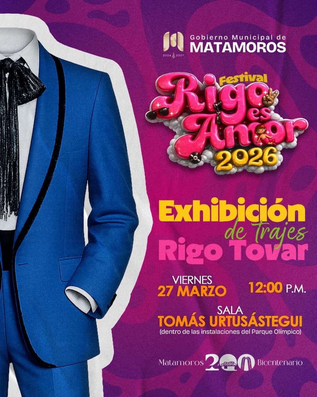 Como parte del Festival Rigo es Amor 2026, podrás descubrir una exhibición especial de los trajes que marcaron la presencia escénica de Rigo Tovar, piezas que reflejan su personalidad, su evolución artística y la conexión única que logró con su público.