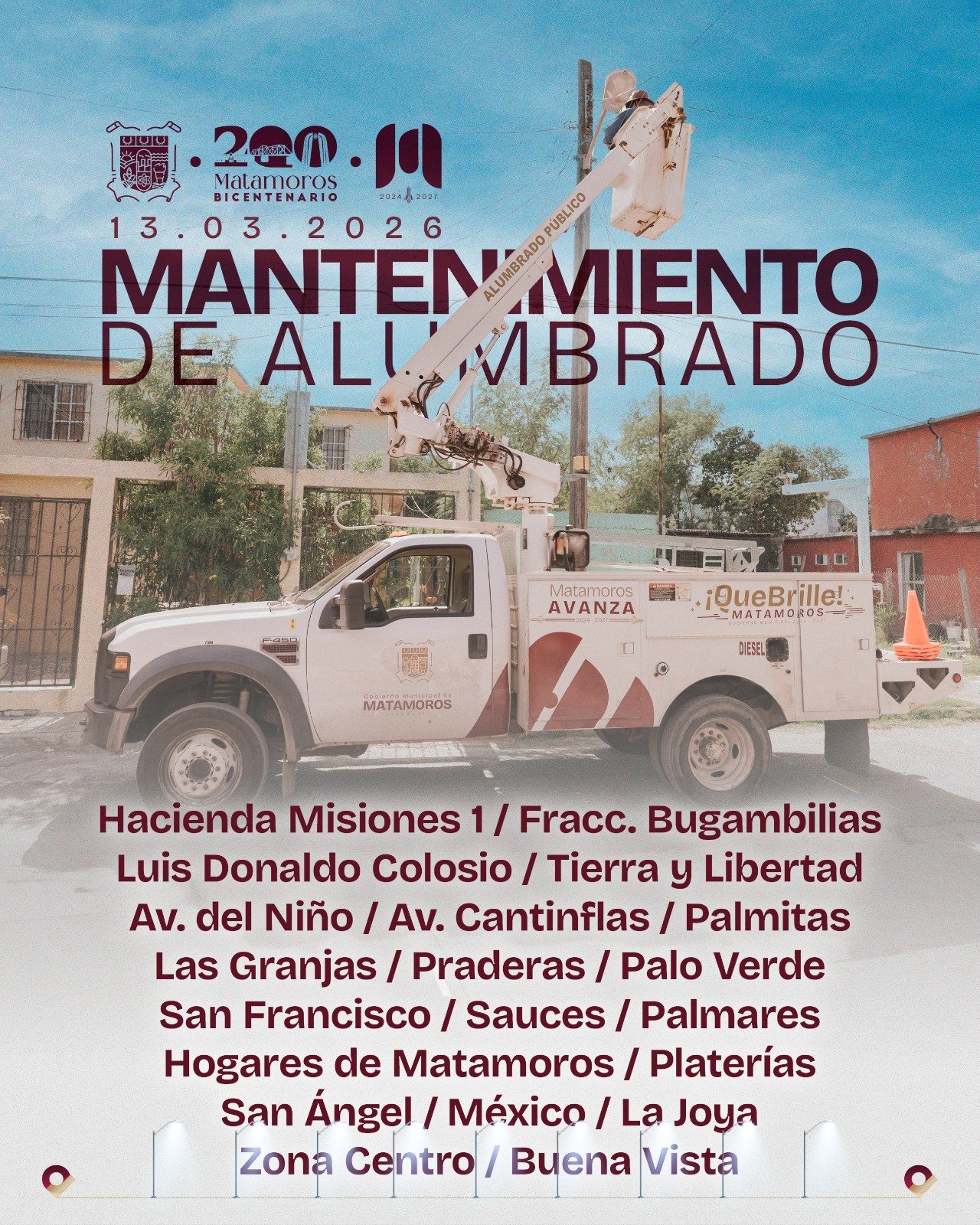 Asimismo, Colonias Los Sauces, Palmares, Hogares de Matamoros, Platerías, San Ángel, México, la Joya, Zona Centro y Buenavista; áreas que requieren mejora para garantizar espacios mejor iluminados.
