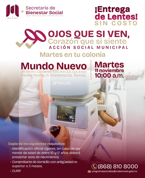 Este apoyo está diseñado especialmente para quienes más lo necesitan, promoviendo la inclusión y el acceso a la salud visual. Con esta iniciativa, el Gobierno Municipal, que encabeza el alcalde Beto Granados, reafirma su compromiso con el bienestar integral de las familias matamorenses.