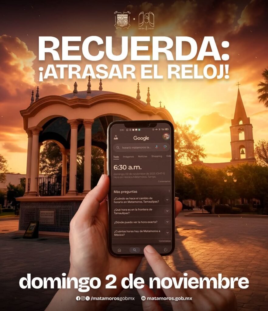 El alcalde Beto Granados invita a todos los matamorenses a recordar el cambio al horario de invierno, una medida que busca aprovechar mejor la luz natural de las mañanas y favorecer nuestras actividades diarias.