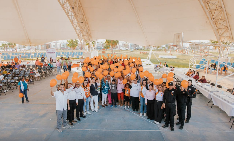 Como símbolo de unión y compromiso, se conformó un lazo naranja humano, representación de fuerza, empatía y determinación colectiva para construir una comunidad libre de violencia.