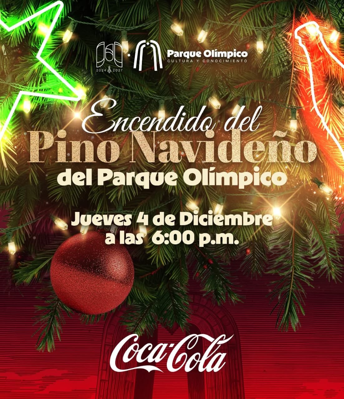 Este jueves 4 de diciembre, el emblemático Parque Olímpico Cultura y Conocimiento se transformará en un escenario lleno de magia navideña. Desde las 6:00 p.m., las y los asistentes podrán disfrutar música en vivo a cargo de la Banda Municipal, sorpresas especiales de Coca-Cola y un ambiente totalmente familiar.
