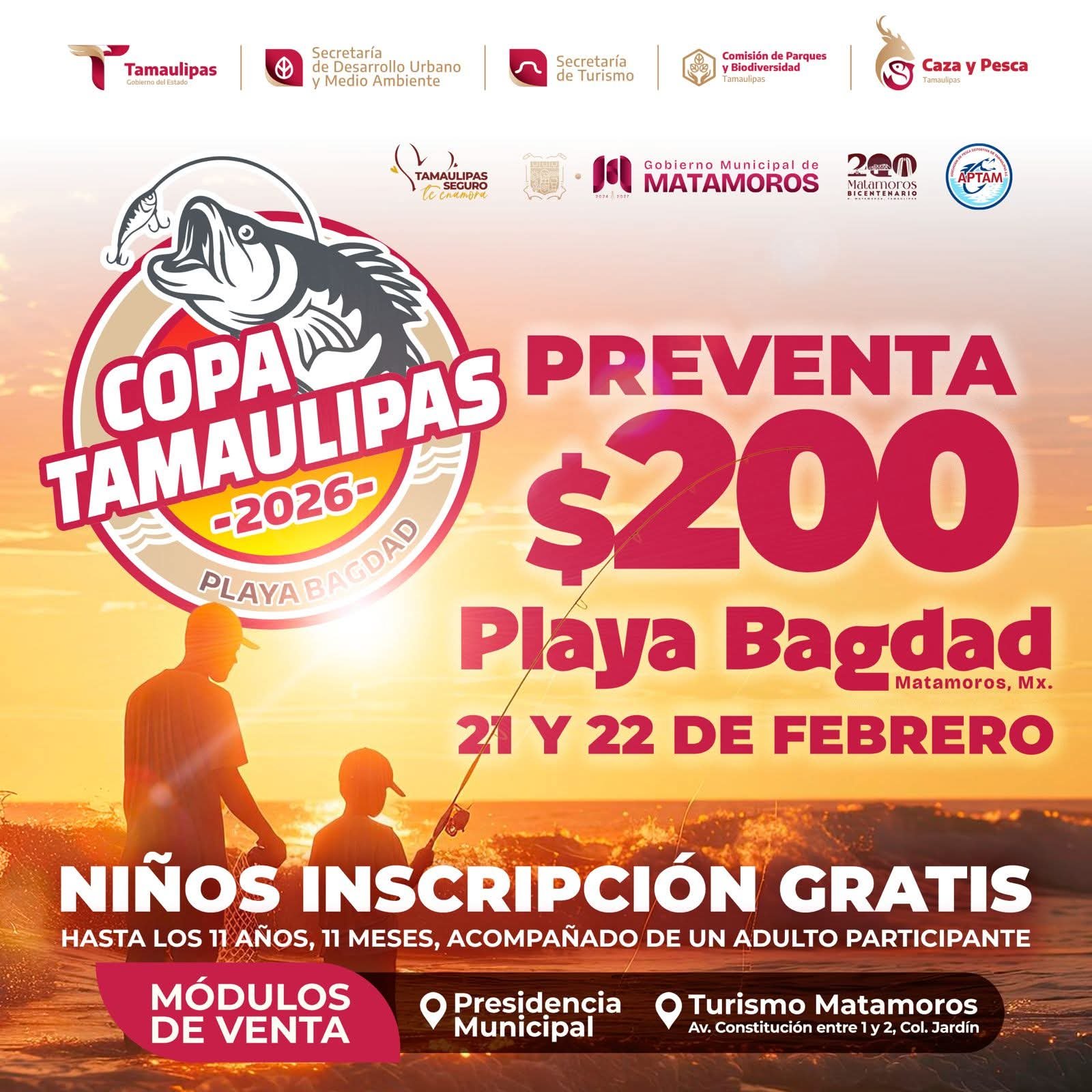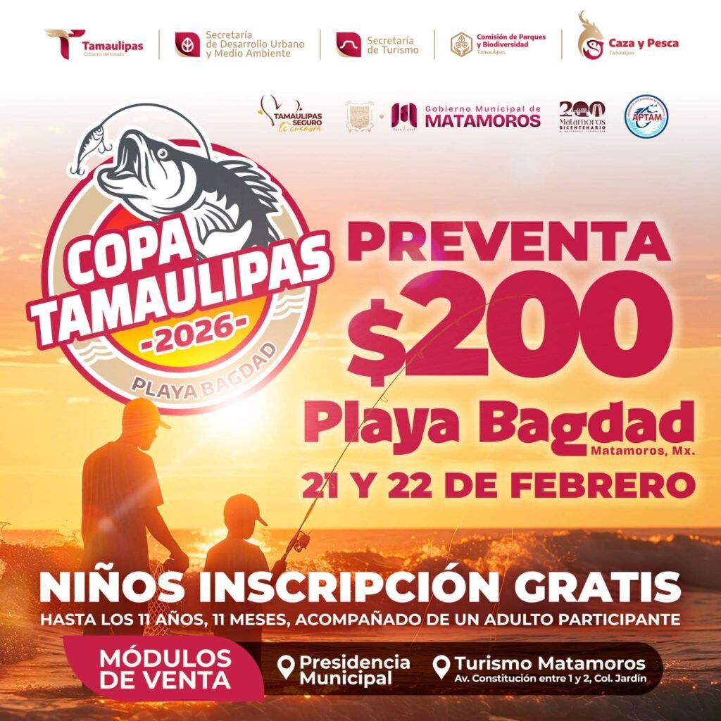 La emoción de la pesca deportiva se vivirá en grande los días 21 y 22 de febrero en la Playa Bagdad, con la realización de la Copa Tamaulipas 2026, un evento que promueve la convivencia familiar, el turismo y el aprovechamiento responsable de nuestros espacios naturales.