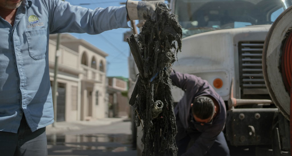 Durante las labores, los trabajadores retiraron una gran cantidad de residuos como cabellos, ropa, toallas, trapeadores y fibras para lavar trastes, materiales que obstruyen el flujo del agua y ocasionan afectaciones a las familias.