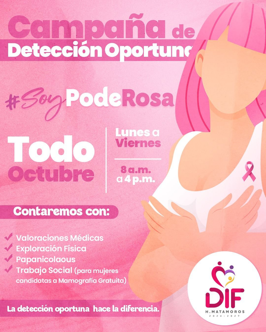 Promueve DIF Matamoros el cuidado de la mujer a través de la Campaña de Detección “Soy PodeRosa” durante el mes de octubre.