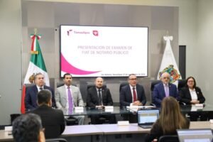 Durante su intervención, el secretario Villegas González agradeció la colaboración del Colegio de Notarios del Estado de Tamaulipas y dirigió un mensaje de aliento a las y los aspirantes, exhortándolos a ejercer esta noble profesión con responsabilidad y ética