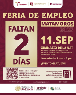 La feria se llevará a cabo el próximo jueves 11 de Septiembre de ocho de la mañana a dos de la tarde, teniendo como sede el gimnasio de la UAT, la cual contará con la participación de diversas empresas locales, regionales y nacionales, que estarán ofreciendo vacantes en diferentes sectores productivos.